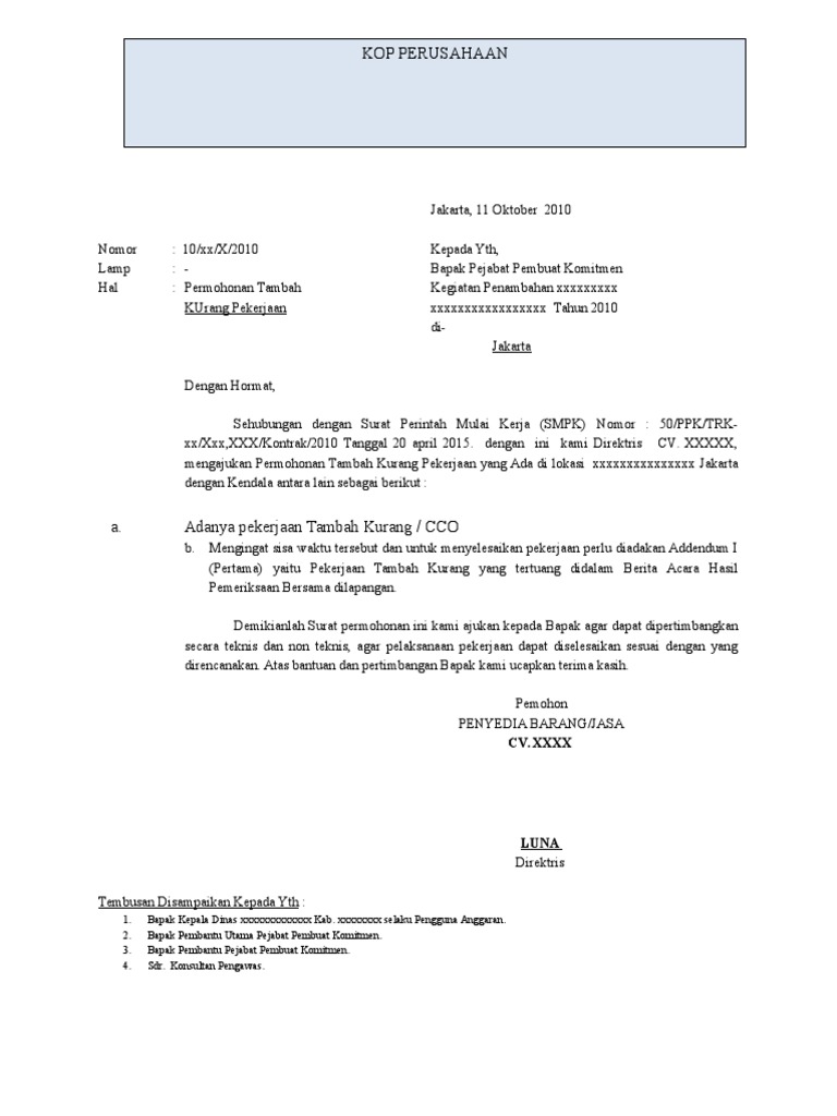 Surat Permohonan Pekerjaan Tambah Kurang Pdf